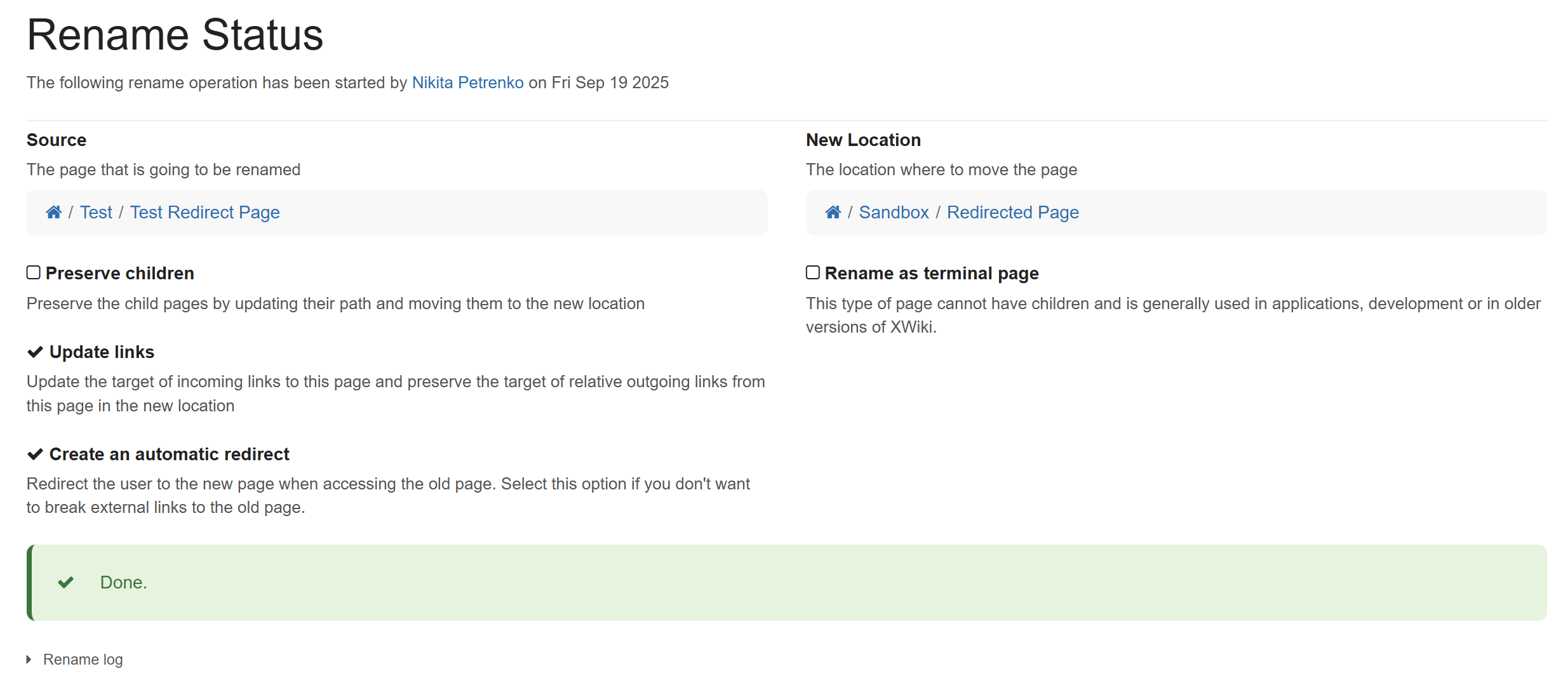 When I rename/move a page and check the box for automatic redirect it’s author is always XWiki.Guest. Why is this? I would expect the name of the user who renamed/moved the page.