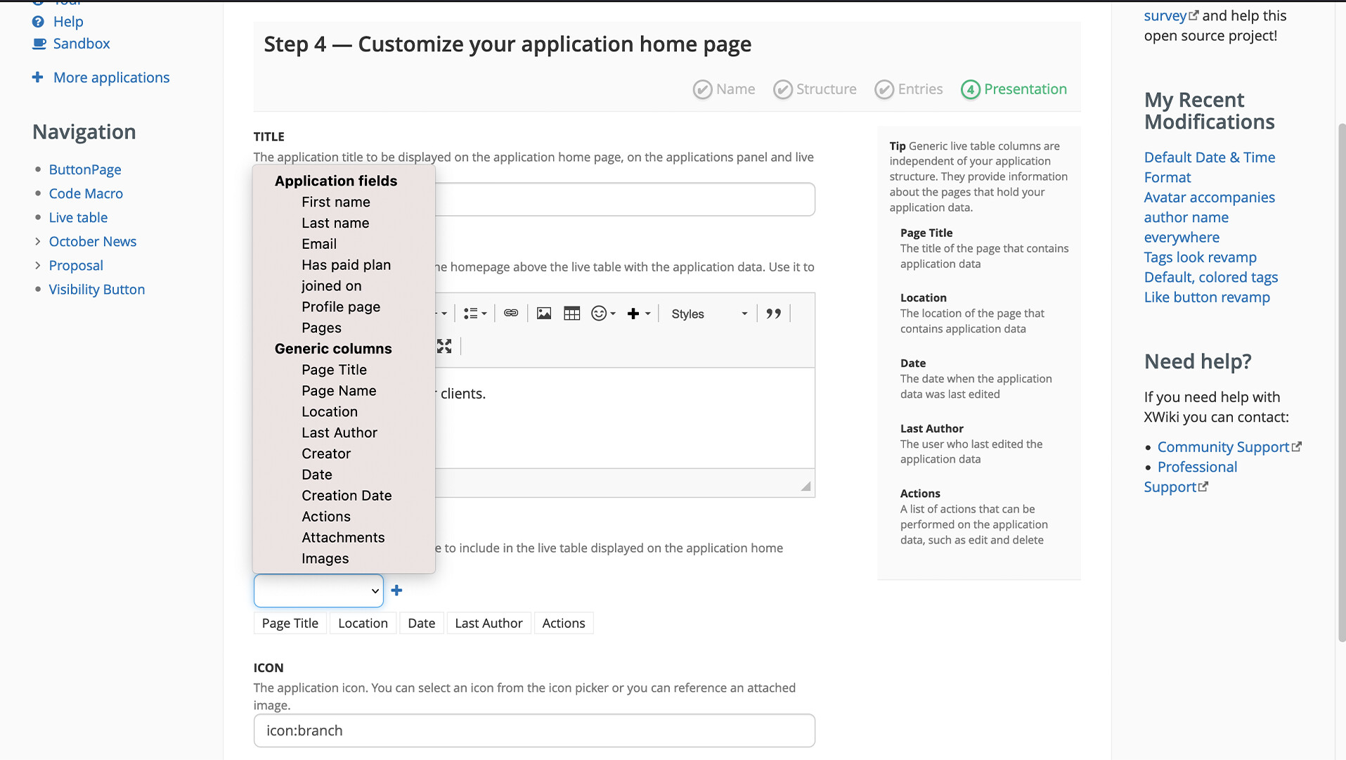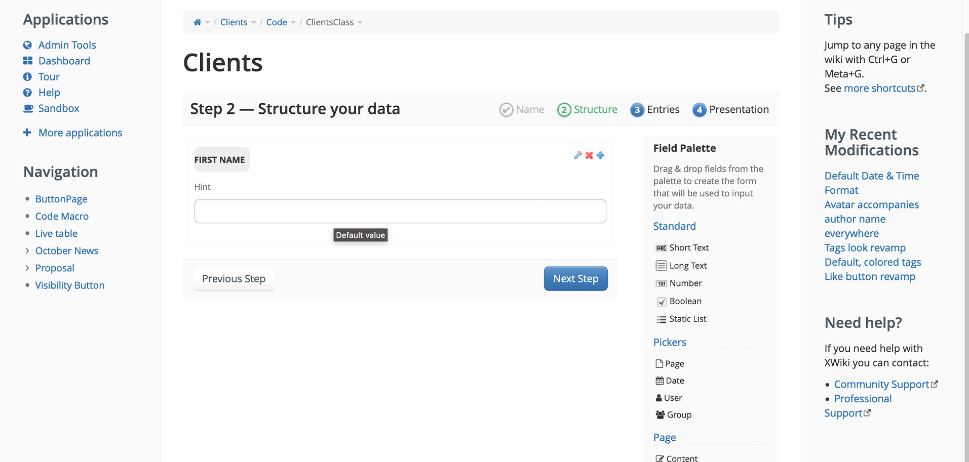 A new user of XWiki can be confused fields like Static List, Content, Title, Database List.