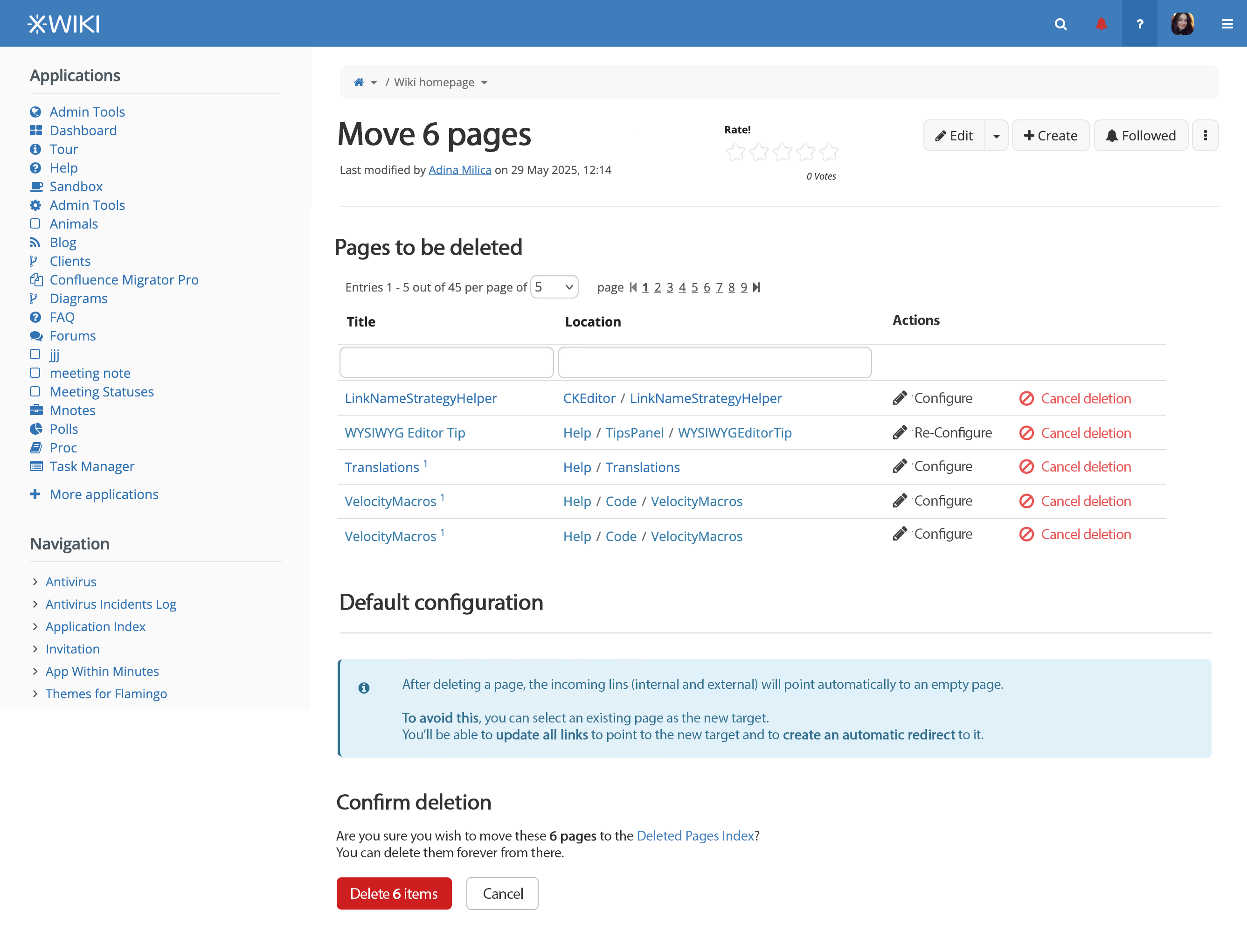 We need a separate screen and not just a confirmation modal because we should let the user select a new target for the deleted pages.