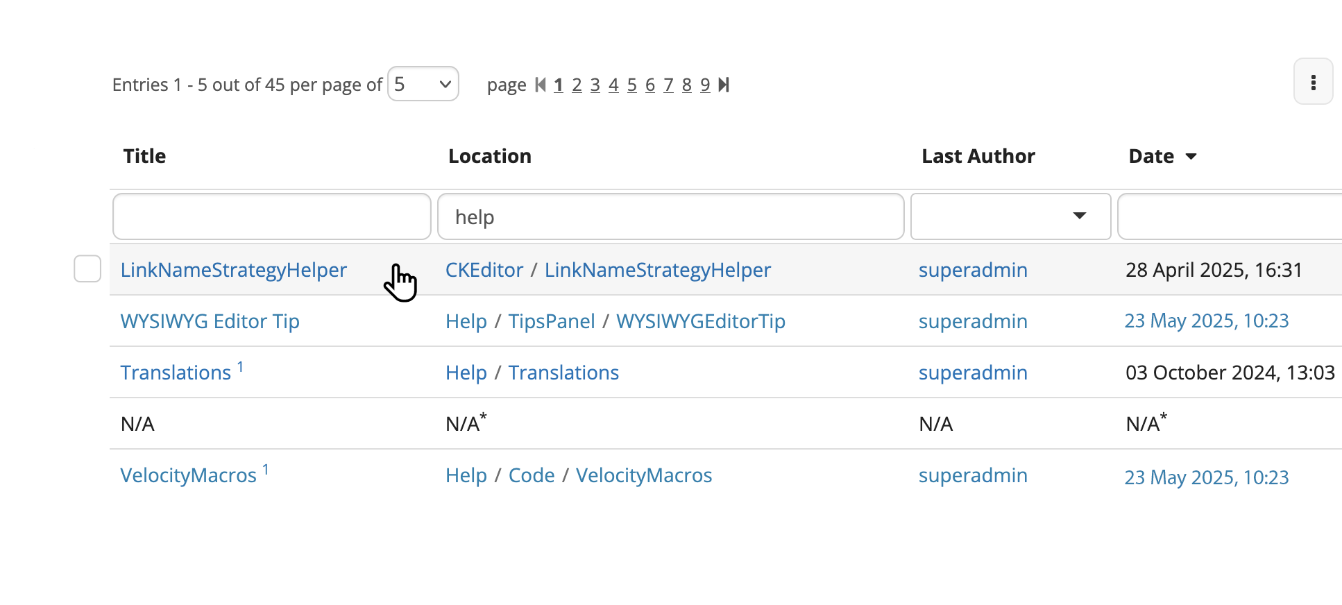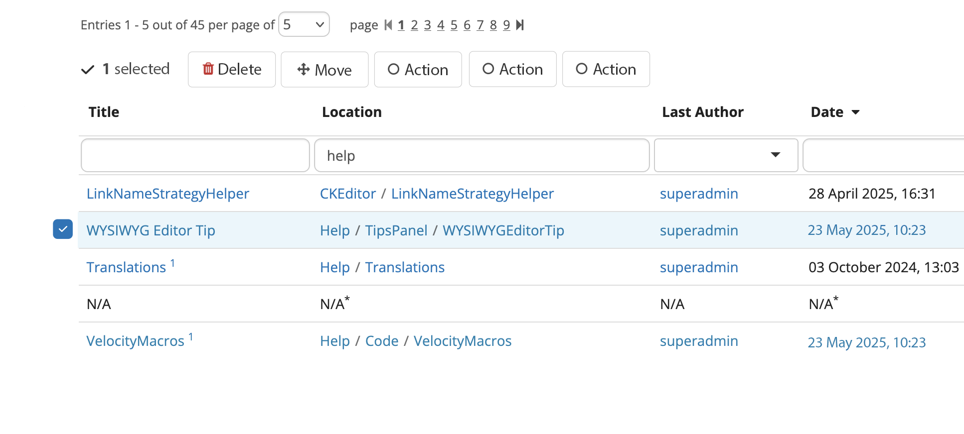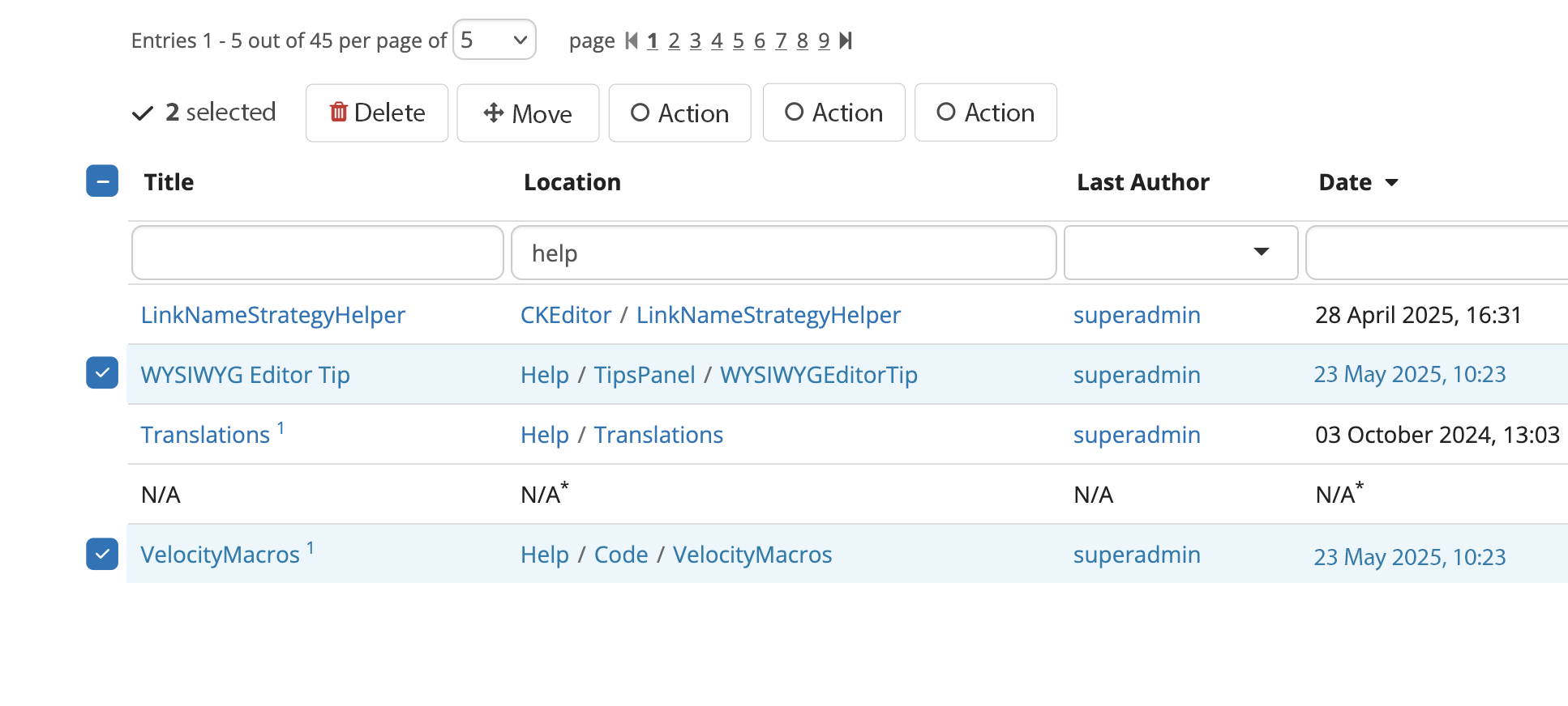 When selecting at least 1 item, the batch actions row gets visible below the row of pagination.