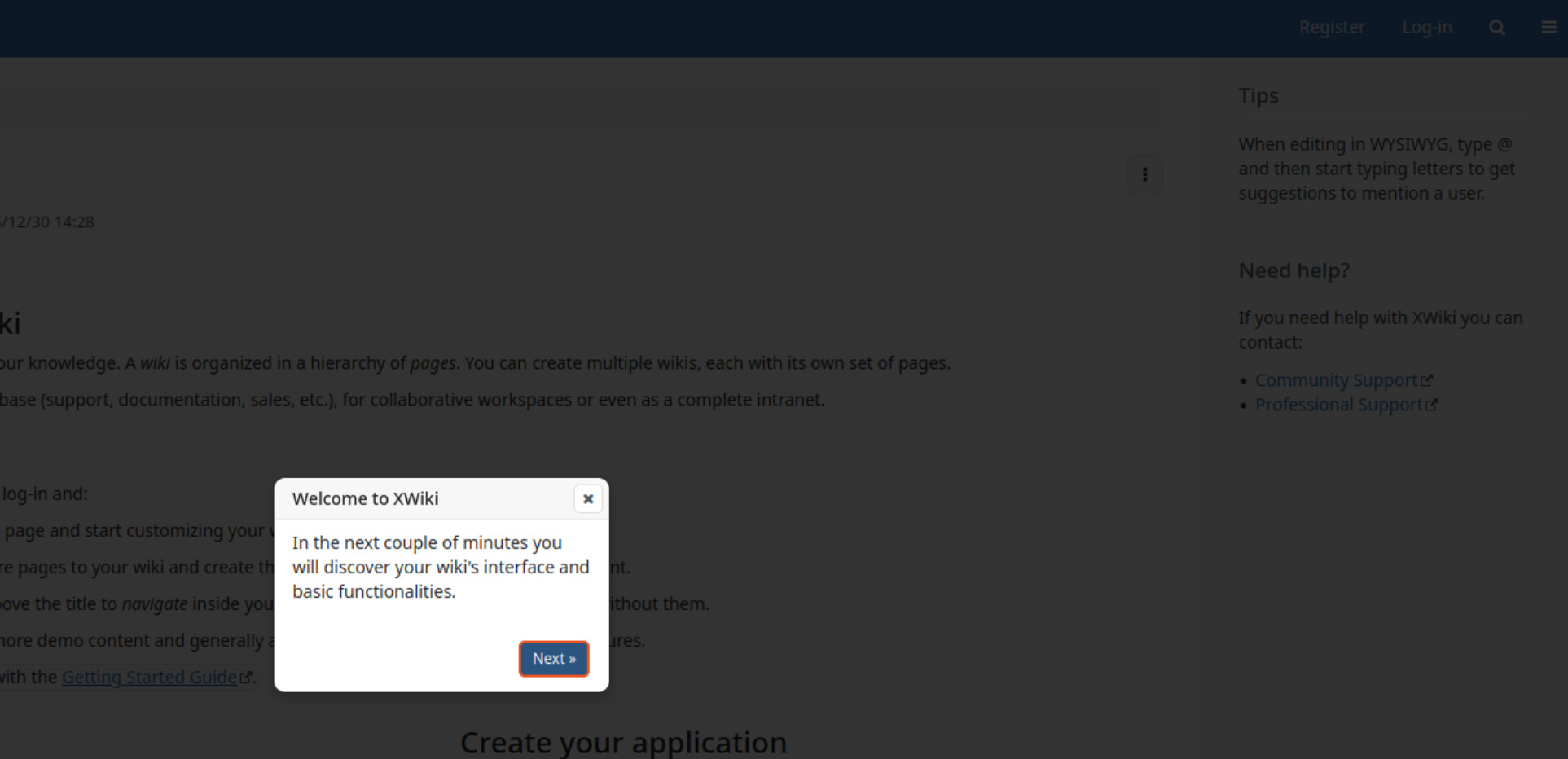 A new XWiki end user only gets to see the Tour App, which showcases a couple of UI elements, but it doesn’t prompt for action. This makes it difficult for the user to understand all the capabilities of XWiki.