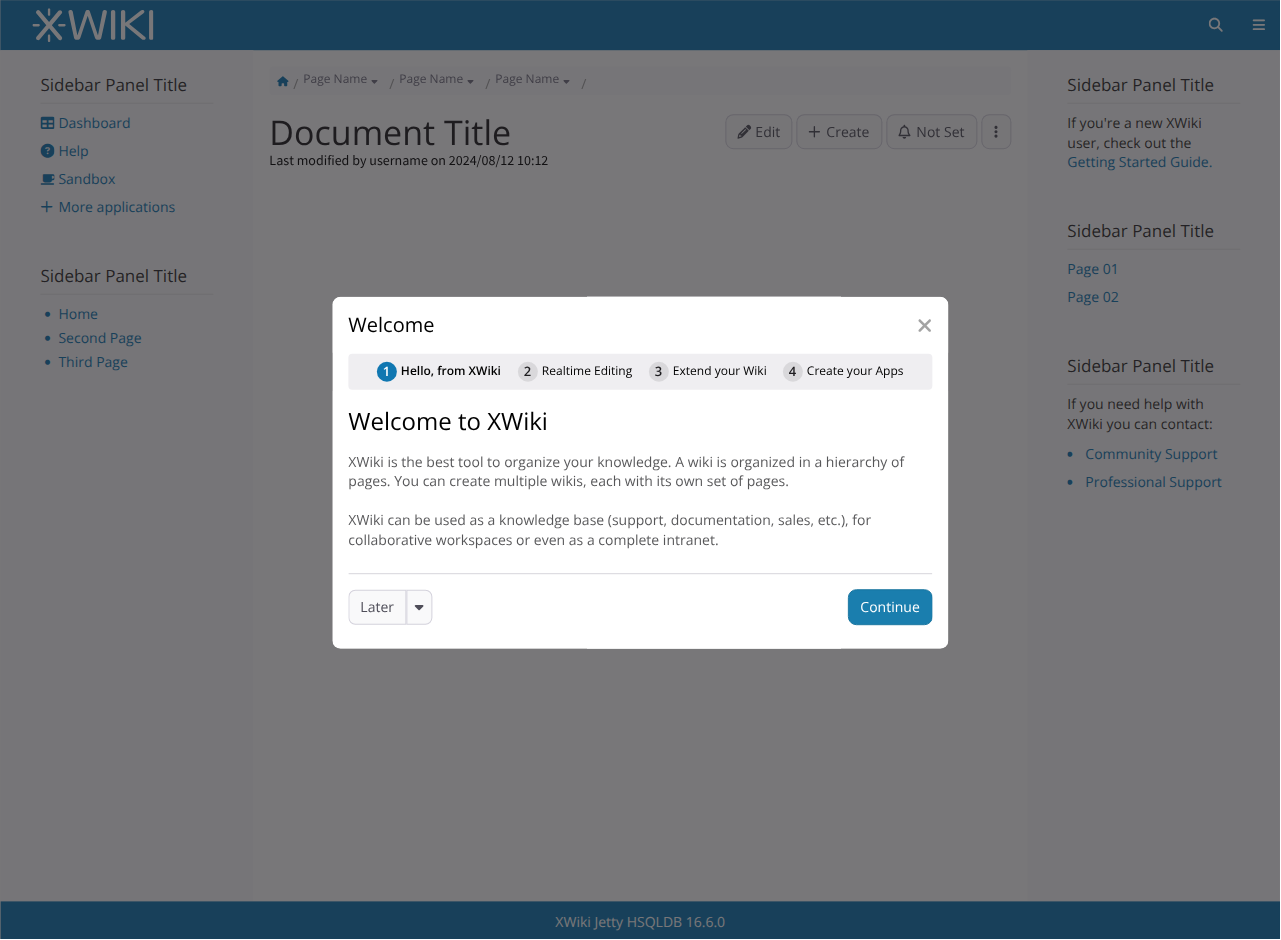 Here’s an example of the DW in the new layout, describing the main parts and featuring the creation of the first user (see more in the Jira section).
