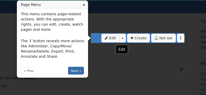 For example, on the first highlight, mouse users can start editing the page while in the tour: