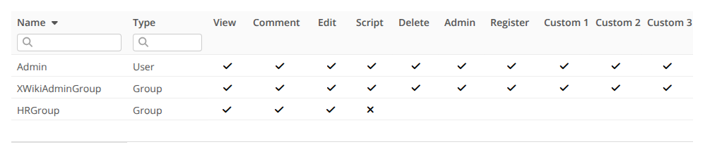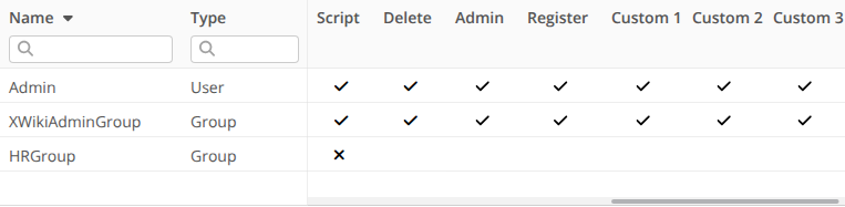 Custom rights will be displayed below the standard XWiki rights in the same interface, maintaining consistency and visibility.