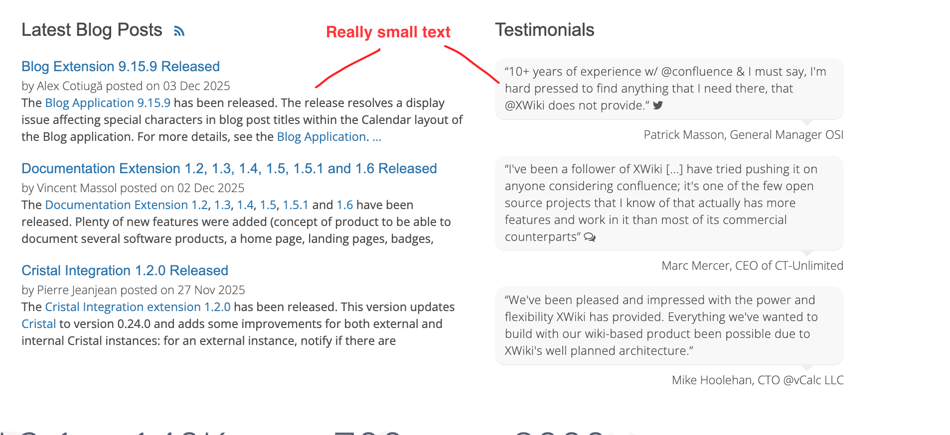 Another option is to increase the font size only on specific places (like the latest blog posts and testimonials) but that would leave the rest of the site (internal pages) with the same legibility problem.