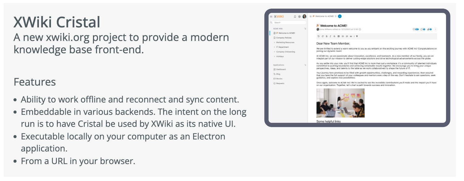 Cristal previously had its own dedicated website, the proposal is to incorporate its content directly into XWiki.org. To improve discoverability, the proposal includes adding Cristal-related entries to the homepage, the main menu, and the download page.