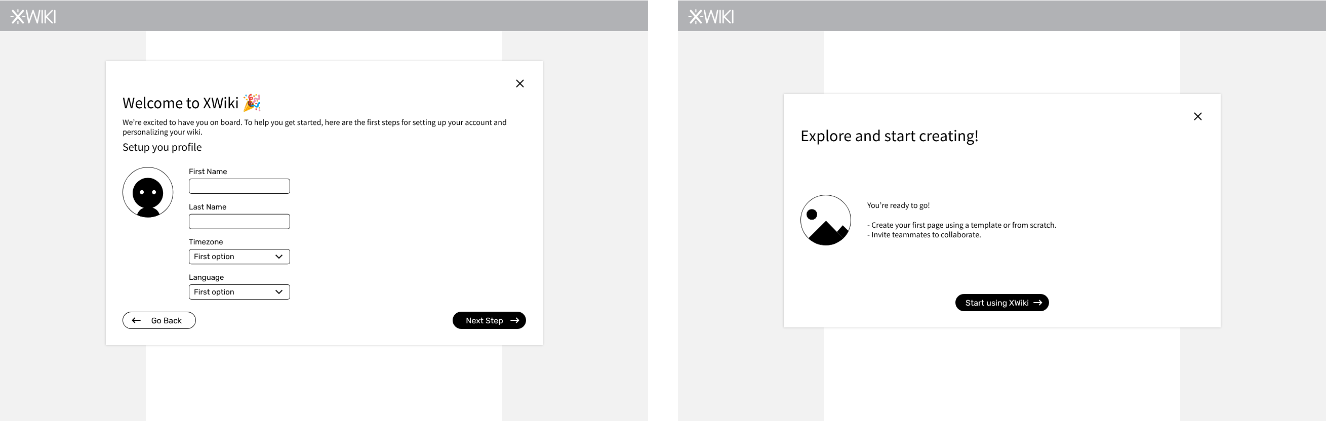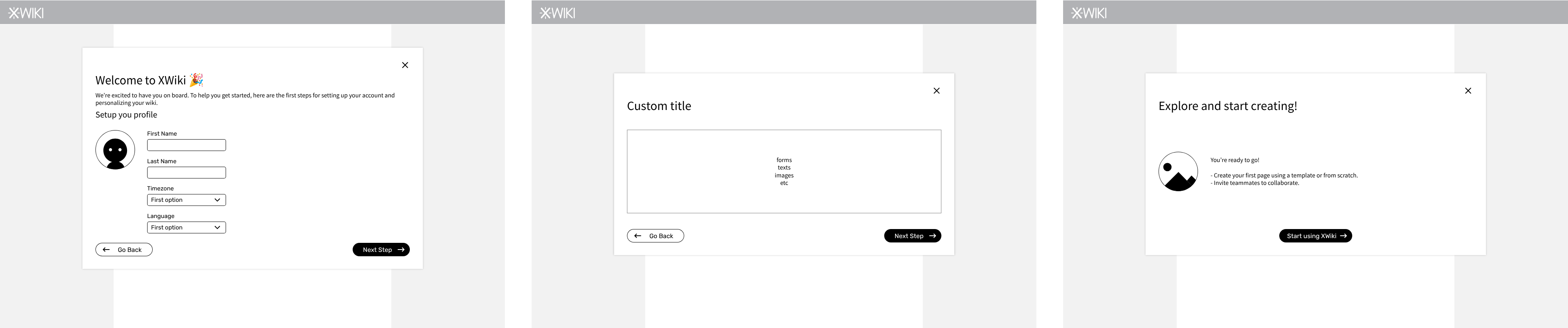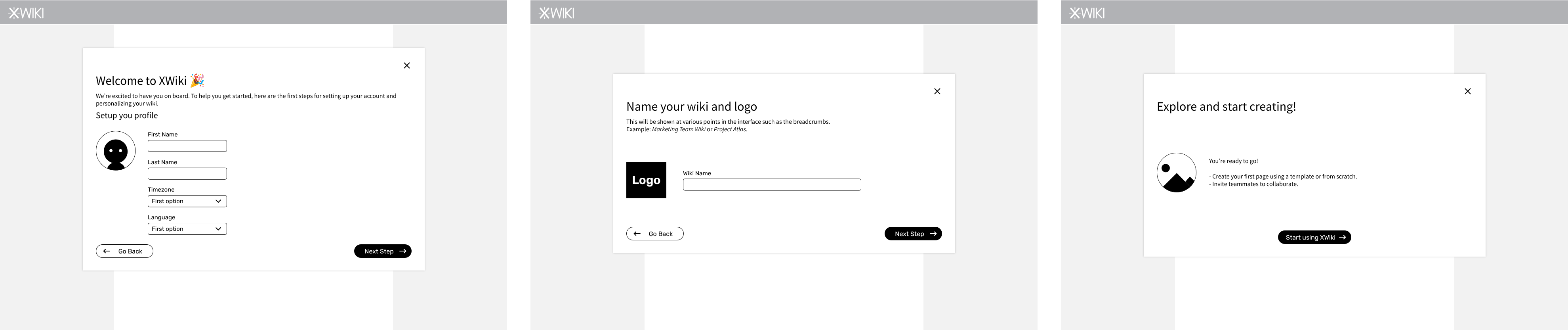 In summary, the overall intent is to simplify the entry points to XWiki, make it easier for people to get started quickly, and adapt the onboarding process to the needs of different users. At the same time, we want to streamline the Tour app so it remains focused on a smaller number of key actions.