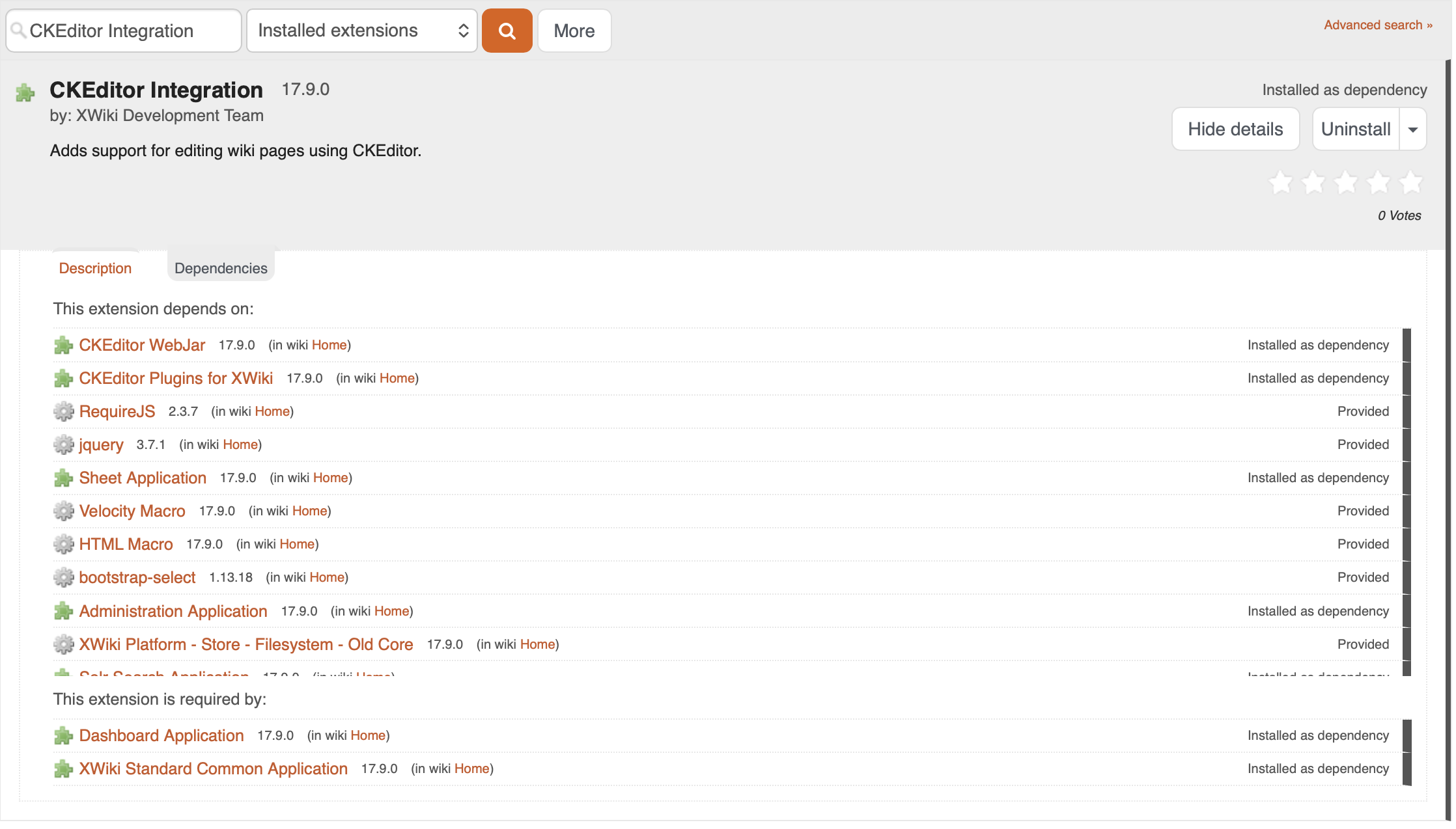 → So I went to the Extension manager, to attempt a CKEditor Integration repair, as mentioned on that thread. But that extension seems to be fine (see attached pic).
