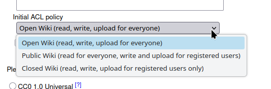 There are also options below that if user self-registration should be enabled, the content license and about usage statistics (similar to active installs). I think it could be interesting to have something similar in XWiki.