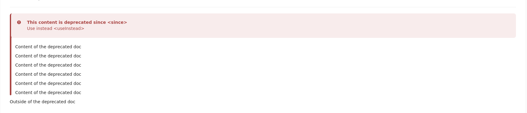 In edition/preview modes, the warning box is not visible. This way, it’s way less distracting, but it’s still easy to separate doc for deprecated features from the rest.